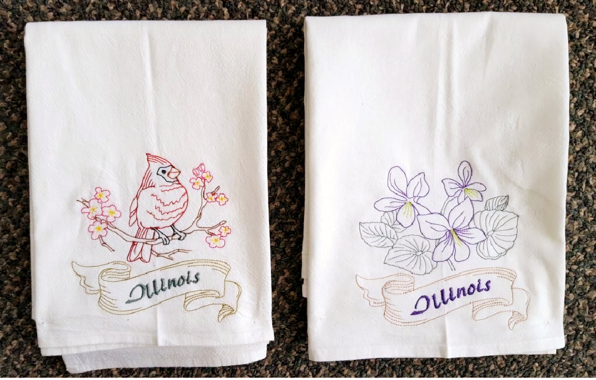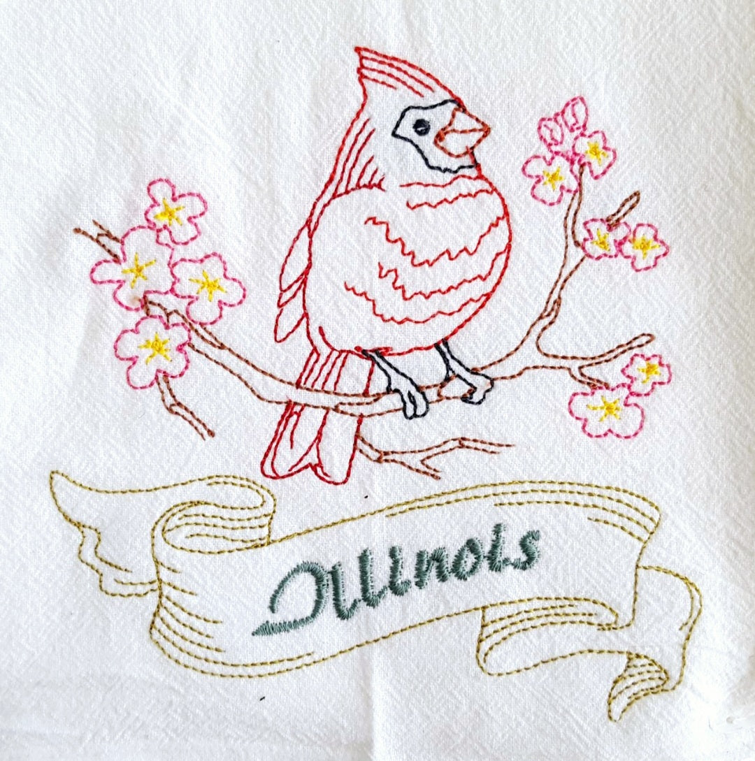 Illinois State Bird Cardinal OR State Flower Purple Violet Machine Embroidered Flour Sack Dish Towels