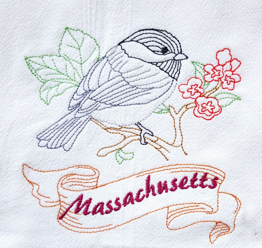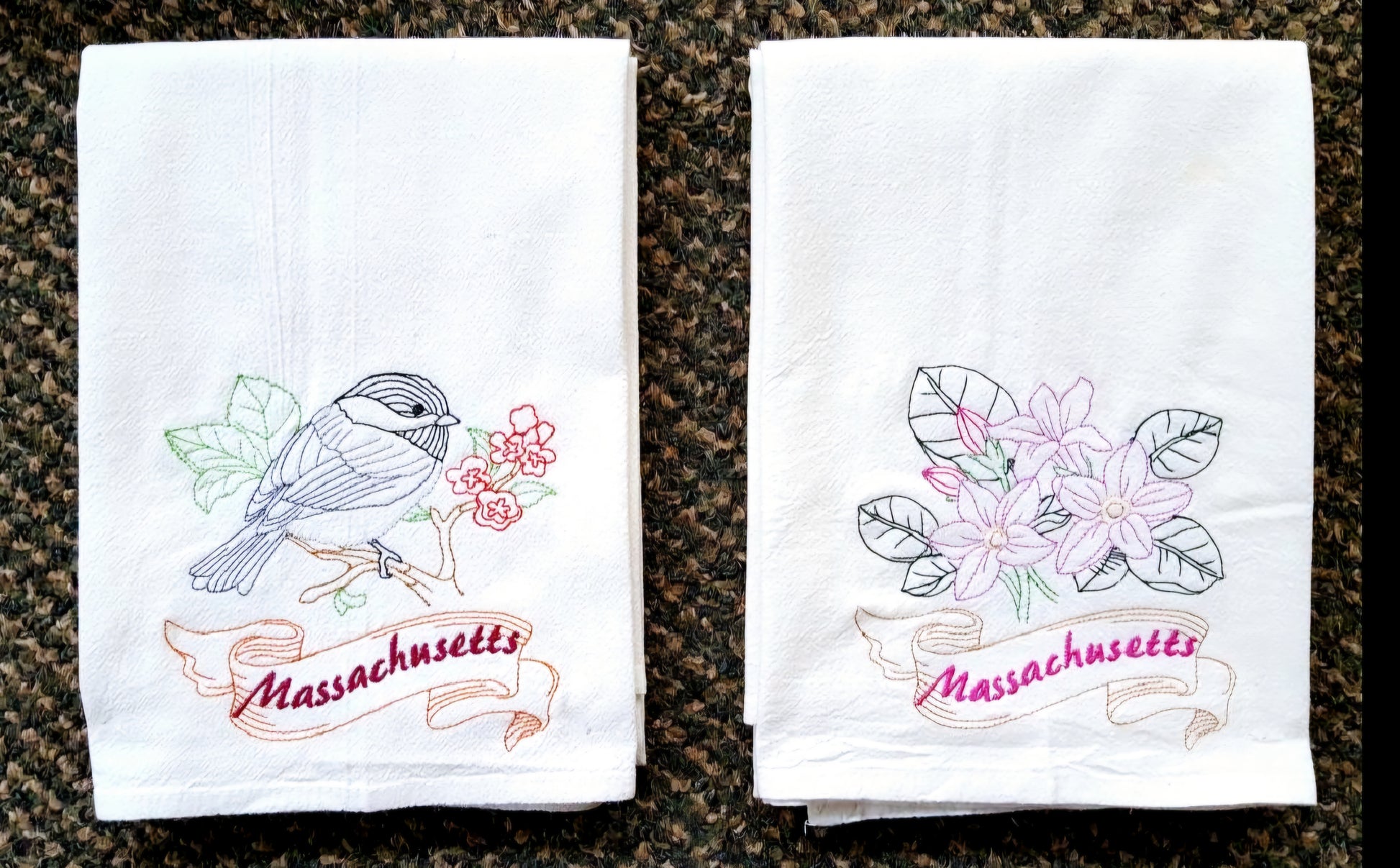 Massachusetts State Bird Chickadee OR State Flower Mayflower Machine Embroidered Flour Sack Towels Dish Towel