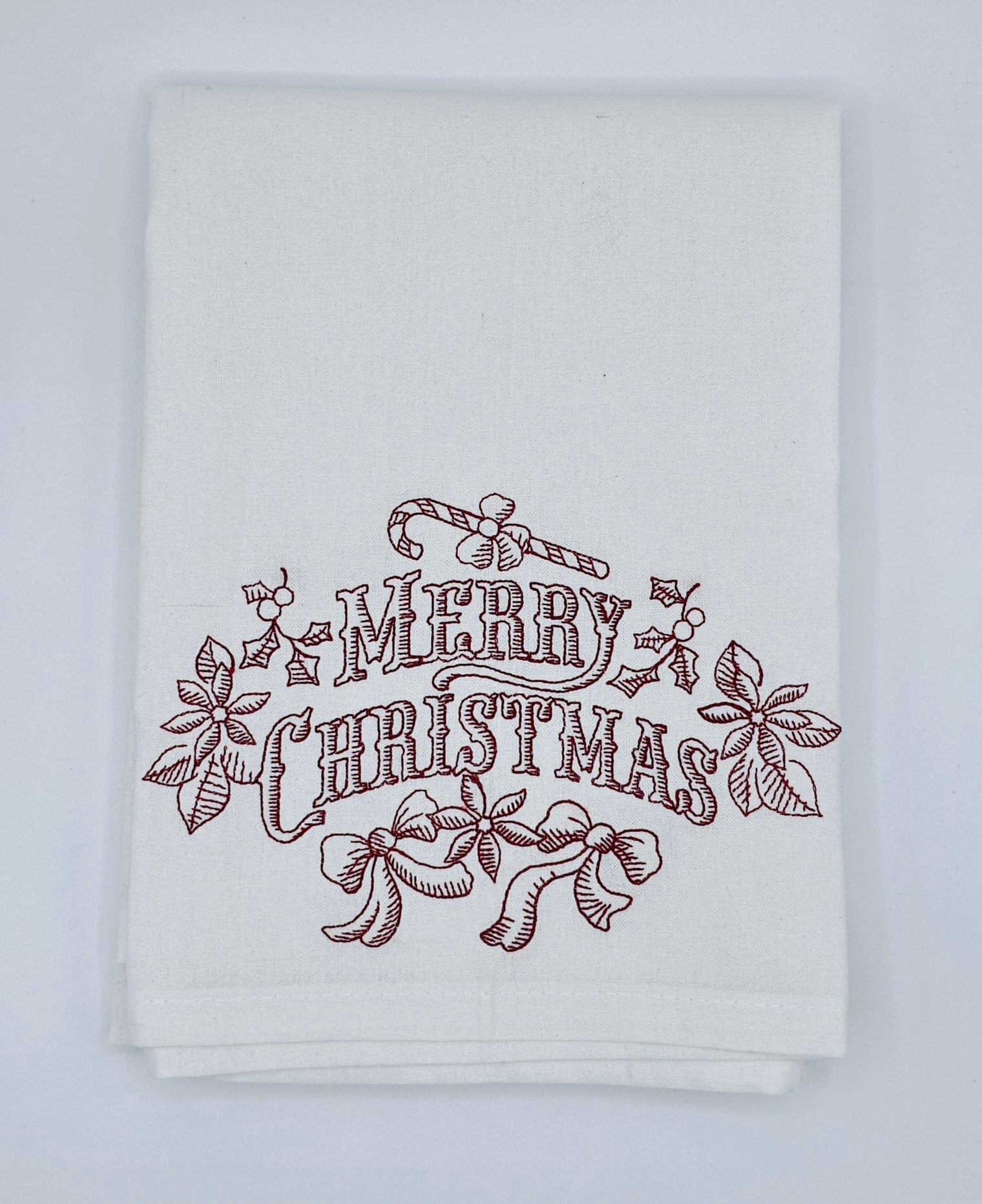 Merry Christmas Machine Embroidered Flour Sack Dish Towel