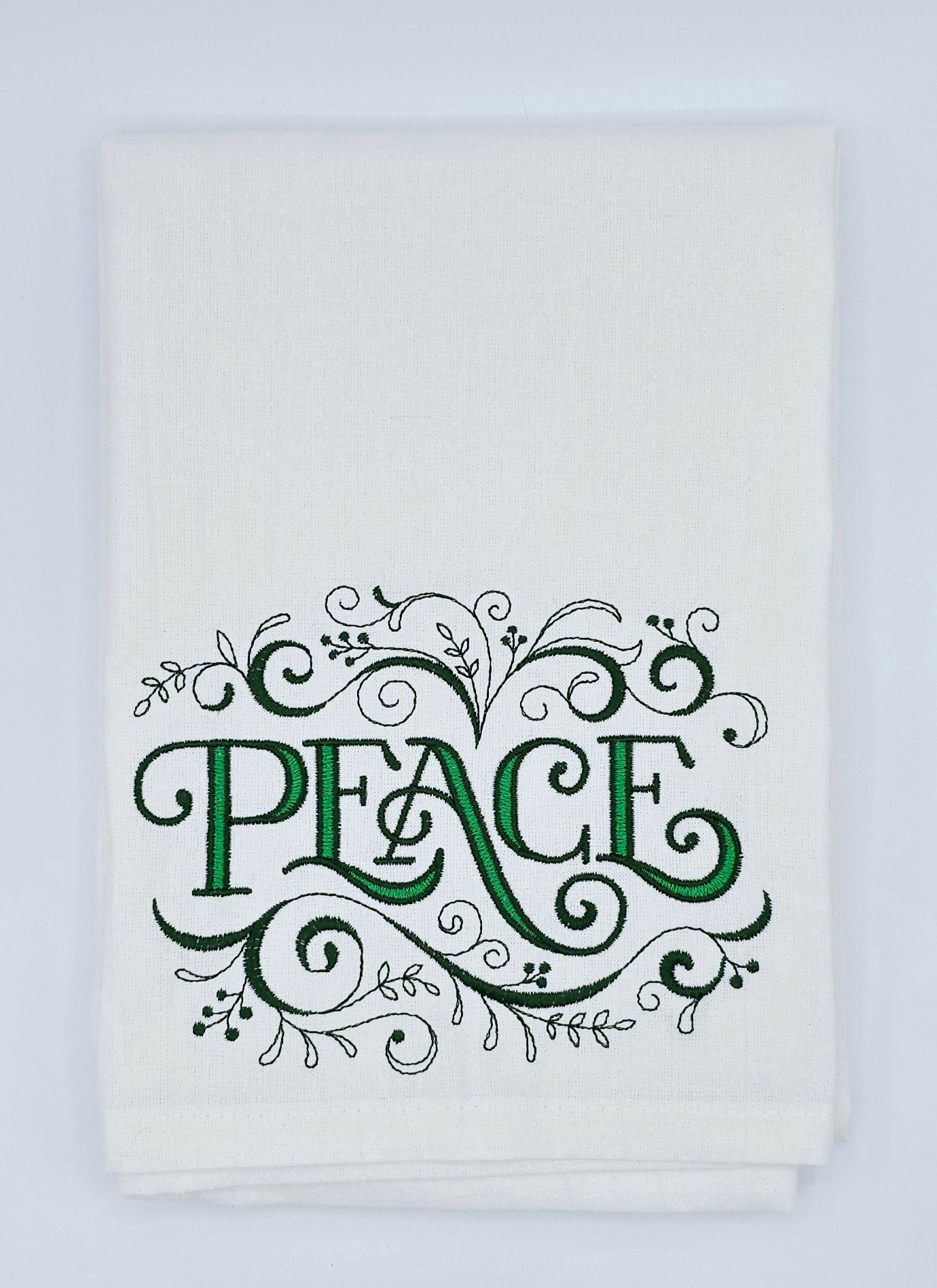 Merry-Peace-Joy Machine Embroidered Flour Sack Dish Towel