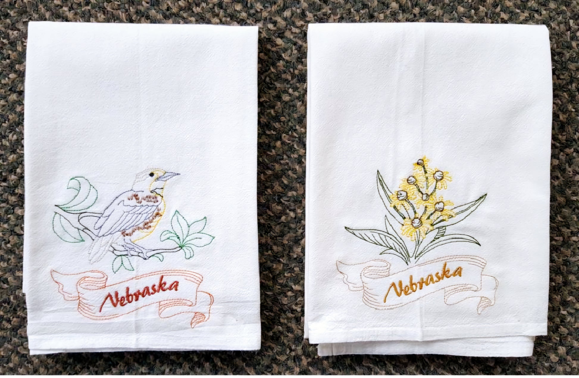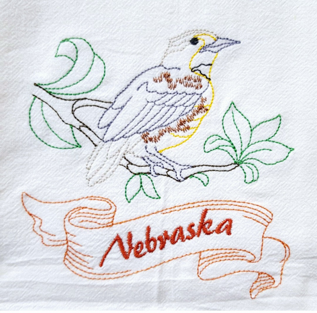 Nebraska State Bird Western Meadowlark OR State Flower Goldenrod Machine Embroidered Flour Sack Dish Towels