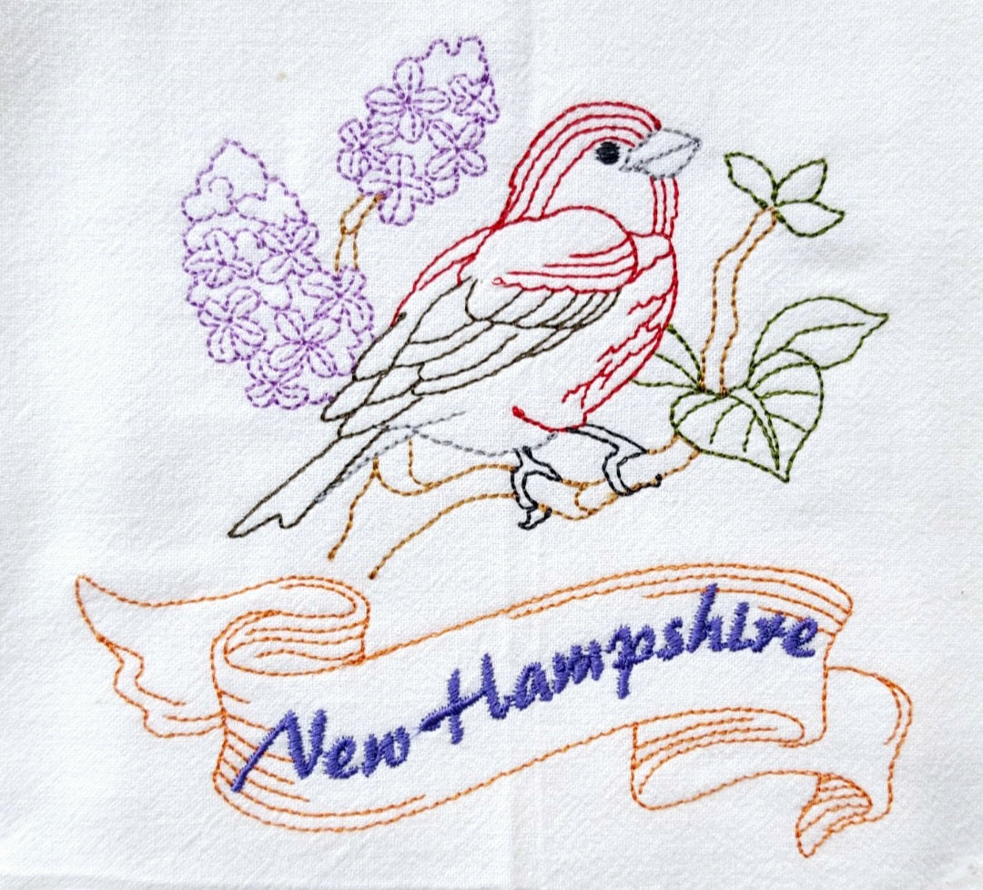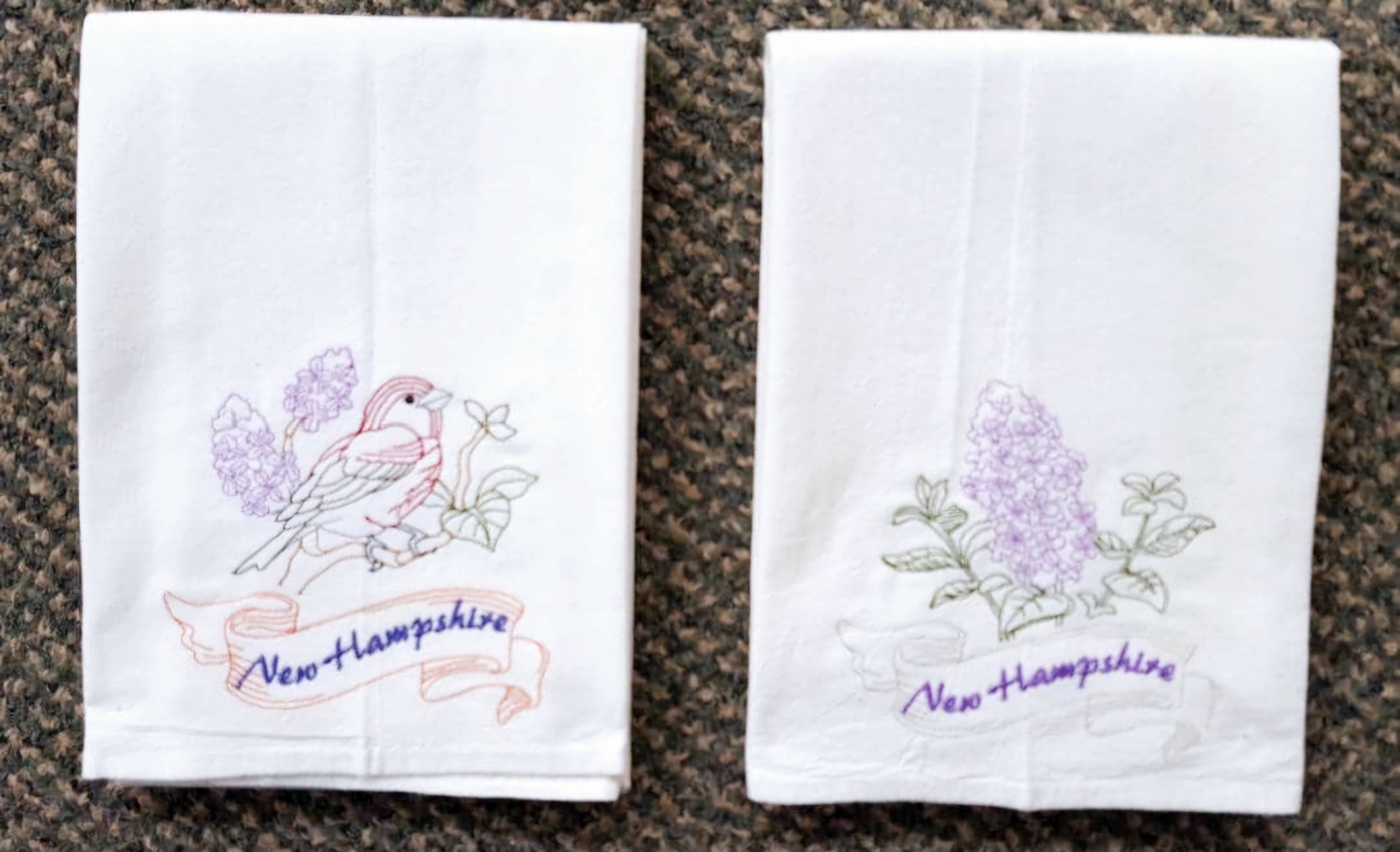 New Hampshire State Bird Purple Finch OR State Flower Purple Lilac Machine Embroidered Flour Sack Dish Towels