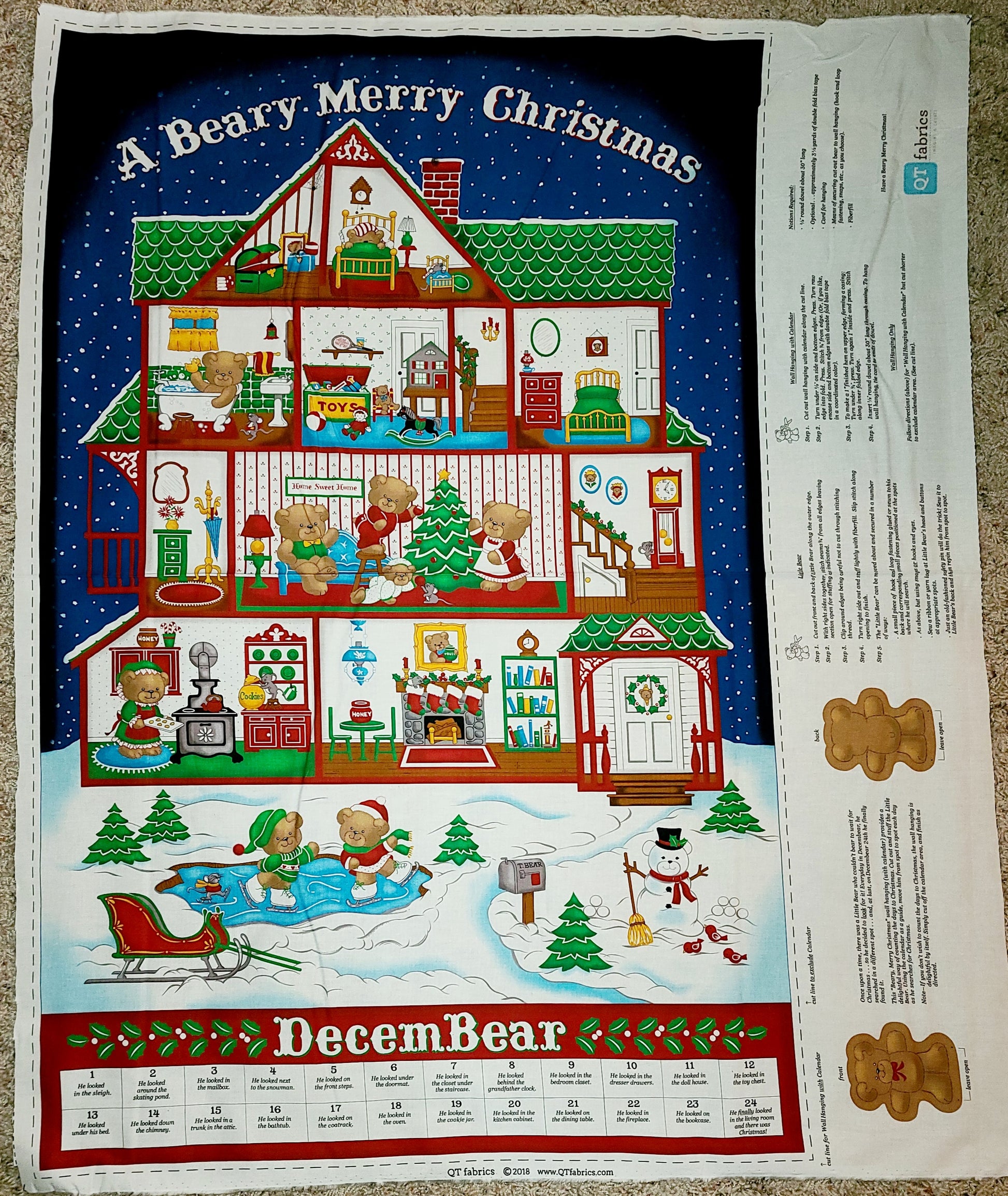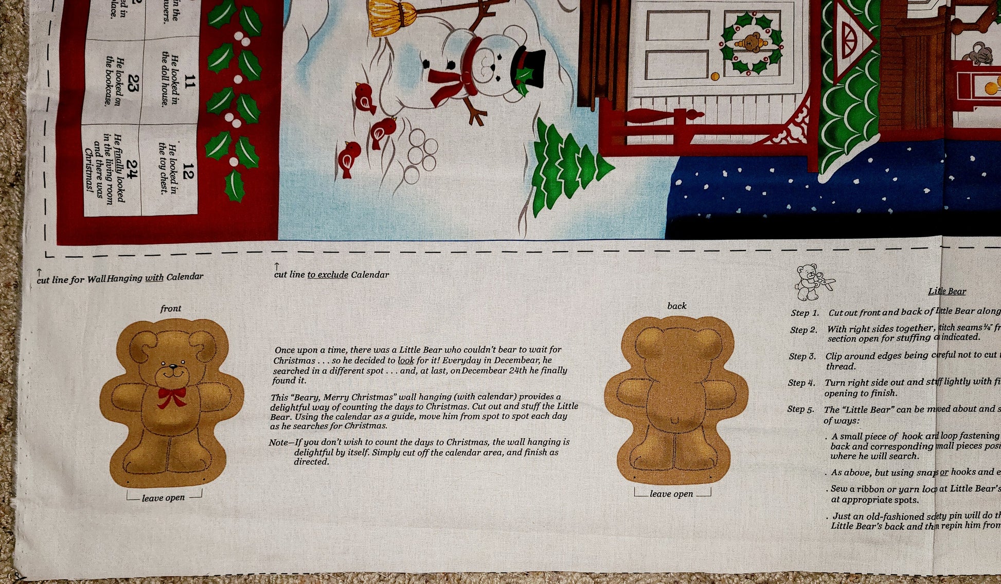 Highly collectible Beary Merry Christmas Countdown-To-Christmas or Advent Calendar Fabric by the Panel.