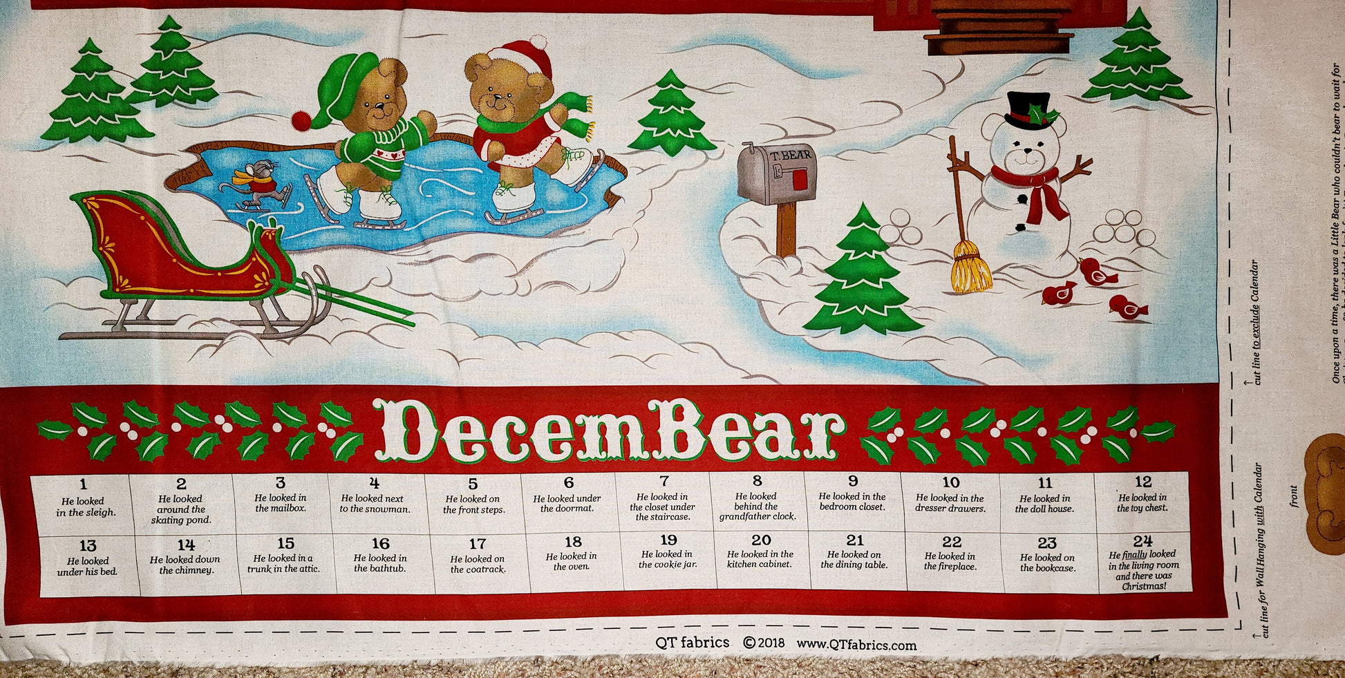 The story of this advent calendar is that a little quilted bear is looking for Christmas. He searches inside and outside his house for Christmas. Each day on the calendar tells you where the little bear is looking for Christmas.