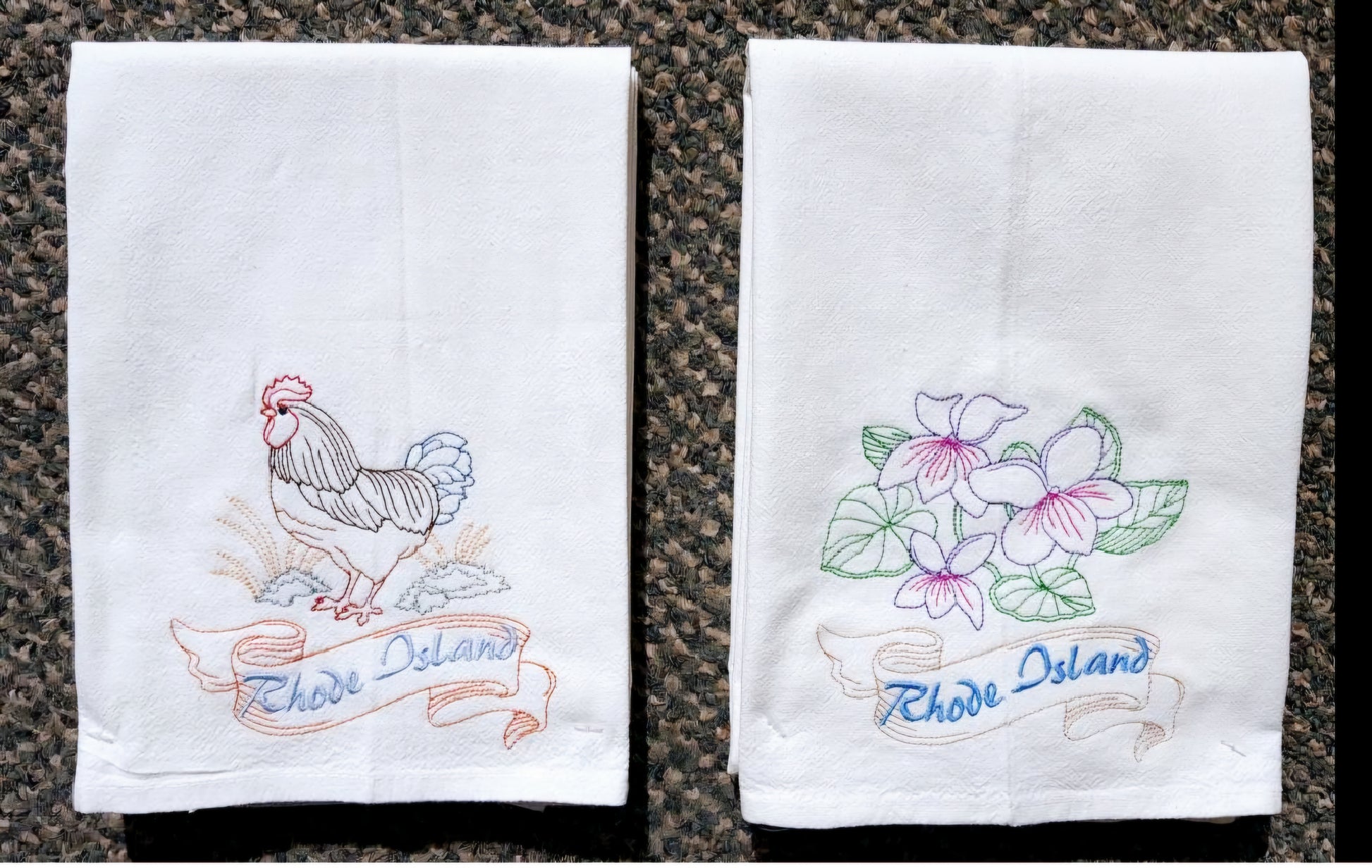 Rhode Island State Bird Rhode Island Red Chicken OR State Flower Violet Flour Sack Towels