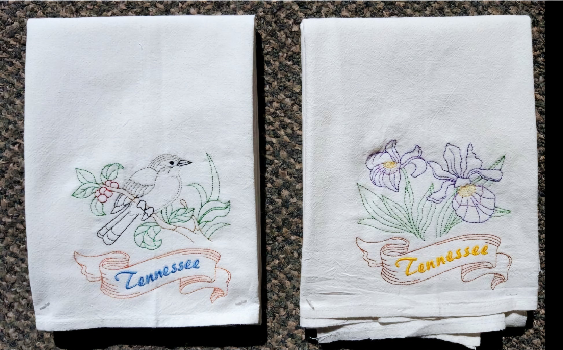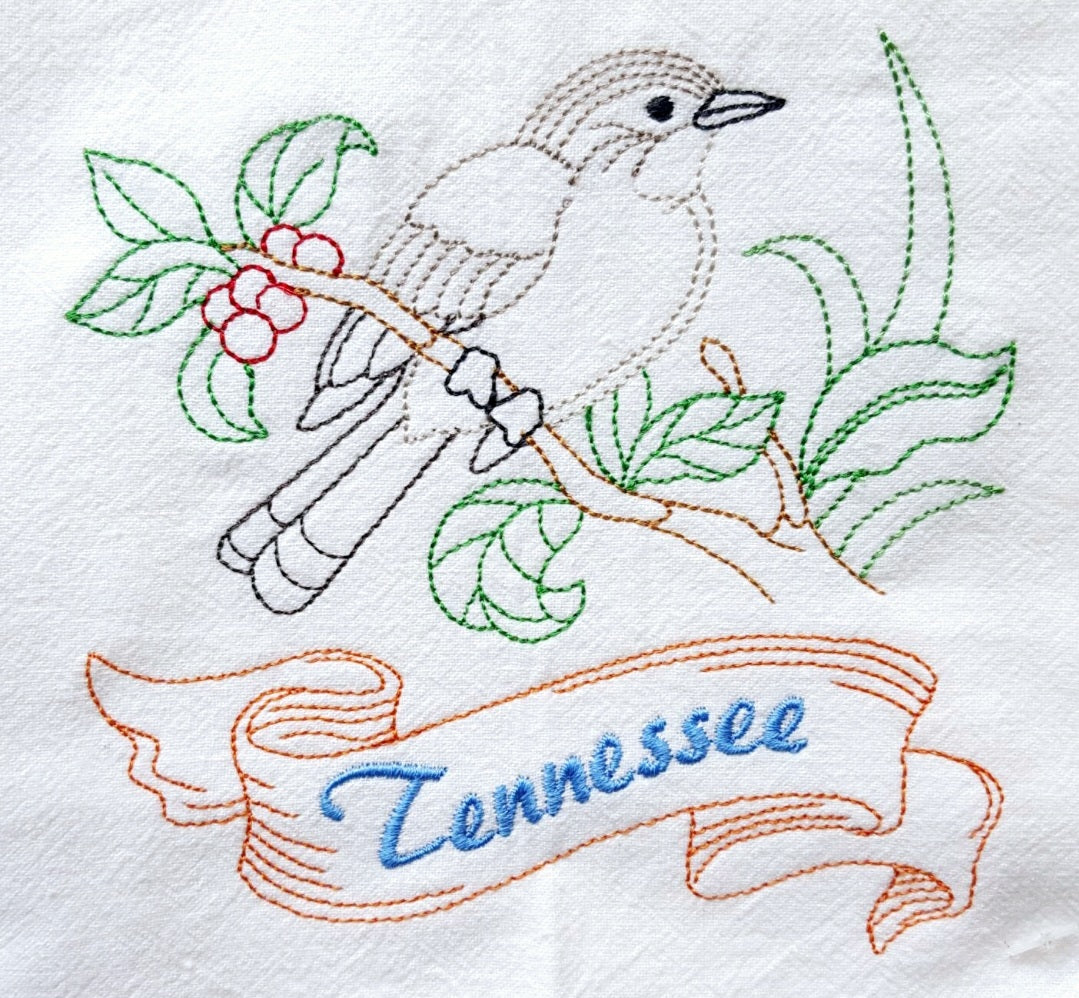 Tennessee State Bird Mockingbird OR State Flower Iris Machine Embroidered Flour Sack Dish Towels